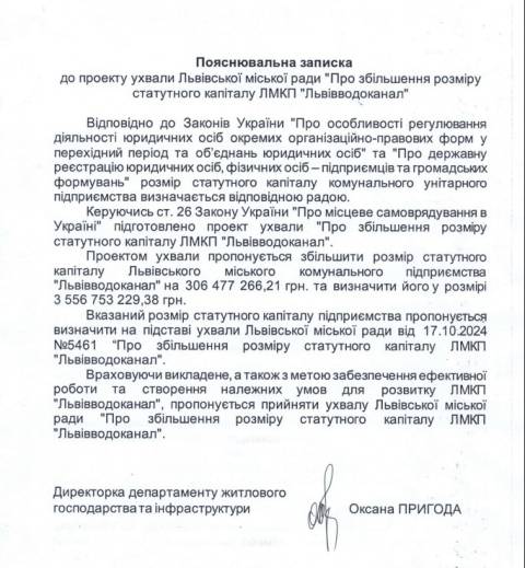 У пояснювальній записці до проєкту ухвали вказано, що поповнення статутного капіталу цього підприємства з бюджету Львова зумовлене створенням належних умов для його розвитку.