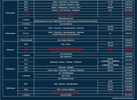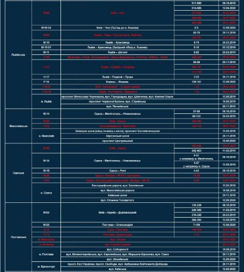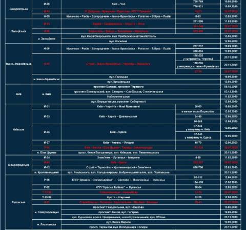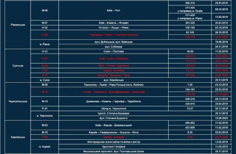 - три на трасі Київ – Чоп (437-450 км, 488-490 км, 585-586 км);