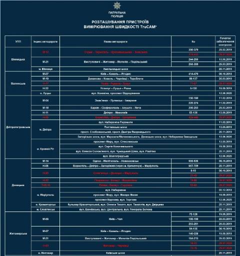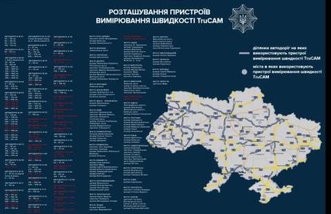 Усього на дорогах України працюватиме 116 приладів TruCAM, а вимірювання здійснюватиметься на 252 ділянках.
