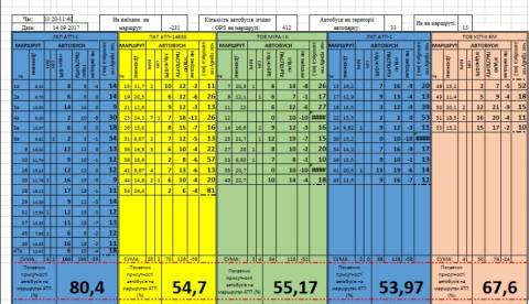 Середні показник кількості автобусів на маршрутах по всіх АТП становить 62,3%.