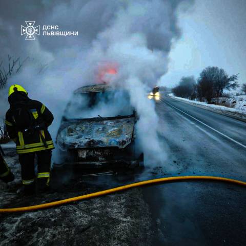Сьогодні, 6 лютого, о 07:26 год на дорозі поблизу села Уличне Дрогобицького району виникла пожежа у мікроавтобусі Mercedes-Benz Vito.