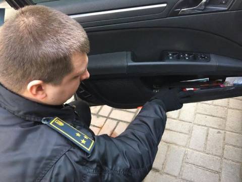 Проте, під час огляду авто у митників виникла підозра щодо можливого переміщення товарів, які обмежені або заборонені для переміщення через кордон. У результаті перевірки, у лівій ніші дверцят авто було знайдено ніж (довжина ножа – 27 см, довжина леза – 15 см).