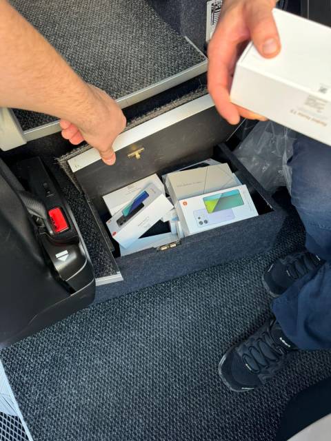 "Під час огляду багажного відділення автобуса працівники митниці виявили два ноутбуки MacBook Air, чотири пари окулярів віртуальної реальності, ігрову консоль, дві акустичних системи і 34 смартфони торгових марок Google, Samsung, Xiaomi Redmi, Asus" – йдеться у повідомленні.