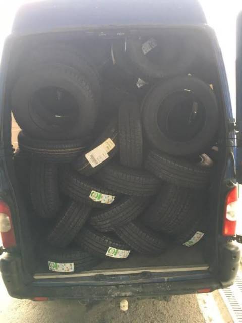 Зокрема, під час поглибленого огляду авто, в багажнику мікроавтобуса було виявлено 89 нових автомобільних шин різної марки та 389 штук різноманітних автозапчастин.