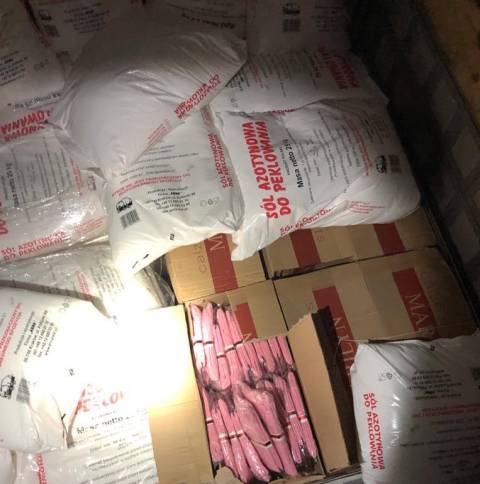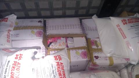 Зокрема, під час огляду вантажівки, під мішками з нітратною сіллю, митники знайшли коробки з новим одягом.