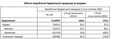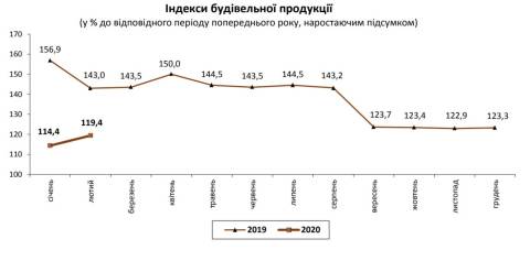 Відтак, індекс будівельної продукції у лютому цього року становив 119,4%, порівняно з цим місяцем минулого року.