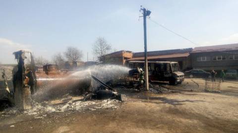 О 15:50 год рятувальники локалізували пожежу та о 15:57 год повністю ліквідували. Внаслідок пожежі вогнем було повністю знищено автобуси та суху траву на площі 100 кв.м.