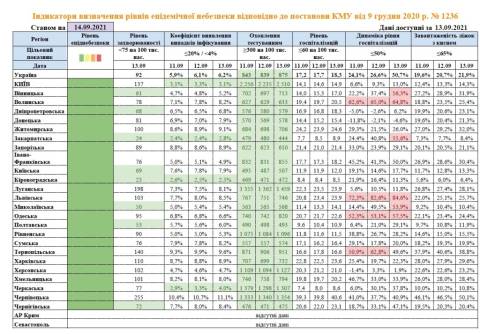Зокрема, на Львівщині показник динаміки госпіталізацій Covid-хворих впродовж 11 днів, з 3 до 14 вересня, перевищує допустимий рівень і становить станом на 13 вересня 84,6%, що є умовою для посилення карантину.
