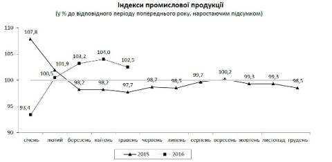 У січні-травні цього року, порівняно з січнем-травнем 2015 року, у області виробництво промислової продукції зросло на 2,5%.
