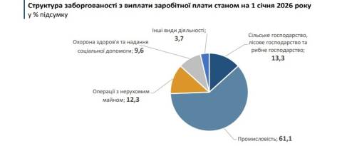 На початок січня 61,1% суми заборгованості припало на промислові підприємства (64,6 млн грн), 13,3% – на підприємства сільського, лісового та рибного господарств (14,0 млн грн), 12,3% – на організації, які здійснюють операції з нерухомим майном (13,1 млн грн), 9,6% – на установи охорони здоров'я та надання соціальної допомоги (10,2 млн грн).
