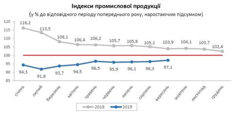 У січні-вересні, порівняно з цими місяцями минулого року, виробництво промислової продукції в області зменшилось на 2,9%.