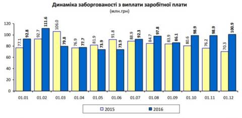 Станом на 1 грудня 2016 року кількість працівників, які несвоєчасно отримали заробітну плату, становила 11 тис. осіб або 2,3% від кількості працівників, зайнятих в економіці. Кожному із них не виплачено у середньому 5016 грн, що на 5,8% більше від середньомісячної заробітної плати в області, нарахованої у листопаді 2016 року.