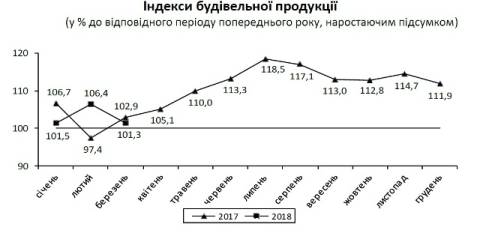 Відтак, індекс будівельної продукції у січні-березні 2018 року становив 101,3%, порівняно з цими місяцями 2017 року.