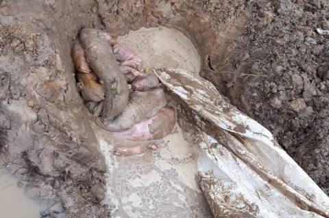 У селі Забужжя виявили невідомі копанки, в яких були захоронені мертві поросята.
