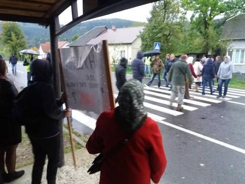 Як йдеться у повідомленні, жителі вимагають відремонтувати дорогу Стрілки - Мшанець. Люди пезберервно ходять по пішоходному переході та не пропускають автомобілі.