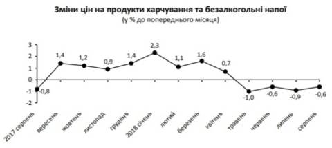 Нагадаємо, у липні, порівняно з червнем, ціни на продукти харчування та безалкогольні напої знизилися на 0,9%.