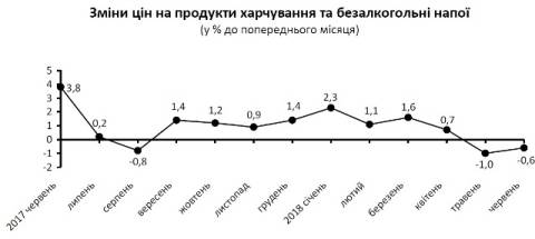 У червні, порівняно з травнем, ціни на продукти харчування та безалкогольні напої знизилися на 0,6%.