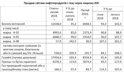 Зокрема, дизельного палива продали 17,5 тис.т, що на 2,4% більше, ніж у ці місяці 2018 року, бензину моторного – 12,4 тис.т (на 4,8% менше), пропану і бутану скраплених – 6,4 тис.т (на 23% більше).