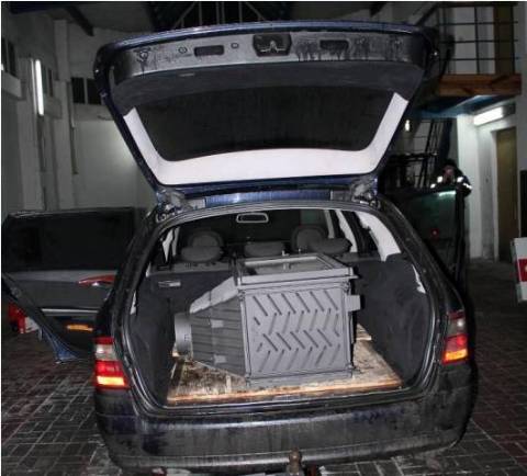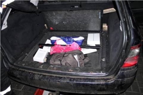 Згодом під масивними вкладами до каміну у ніші багажного відділення та запасного колеса оглядова група знайшла 16 комплектів продукції всесвітньо відомого бренду.