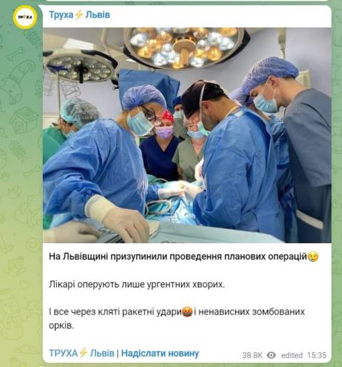 "На Львівщині призупинили проведення планових операцій. Лікарі оперують лише ургентних хворих" – йдеться у повідомленні.