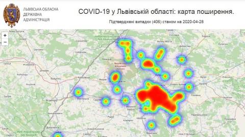 Львівська ОДА у співпраці із Lviv IT Cluster (UNITED FOR HEALTH) та N-iX розробили карту області, яка в онлайн режимі у розрізі місцевості показує поширення коронавірусу у регіоні – демонструє, з яких районів пацієнти із підтвердженим діагнозом.