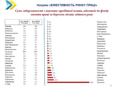 Відтак, станом на 1 квітня 2017 року в Україні заборгованість із виплати заробітної плати складала 3,8%. Порівняно із 2016 роком, вона зменшилася на 0,9%.