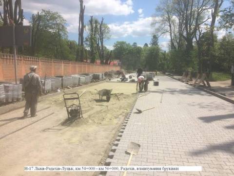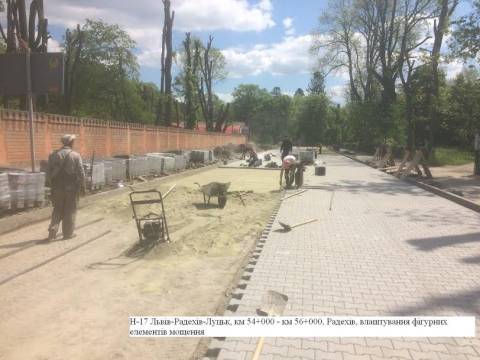 - Львів-Радехів-Луцьк, км 54 – км 56, м. Радехів – роботи з влаштування бруківки, бортового каменю та габіонів;