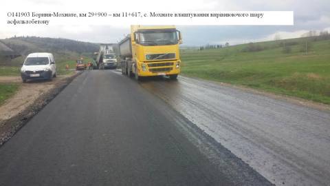 Станом на 12 травня тут влаштовано 4,32 км вирівнюючого та 3,8 км верхнього шарів асфальтобетонного покриття. Роботи ведуться в межах населених пунктів Матків та Мохнате.