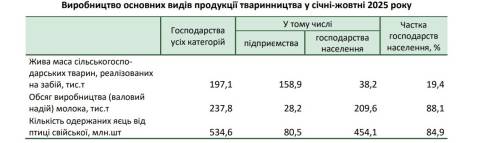 У господарствах усіх категорій було вироблено 197,1 тис. т м’яса, 237,8 тис. т – молока, 534,6 млн шт. – яєць.