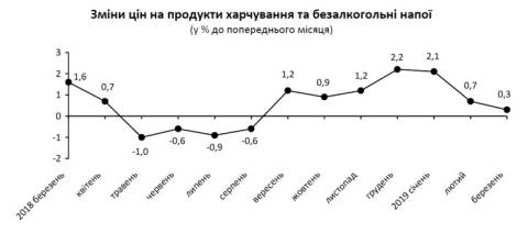 У березні, порівняно з лютим, ціни на продукти харчування та безалкогольні напої зросли на 0,3%.