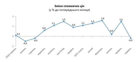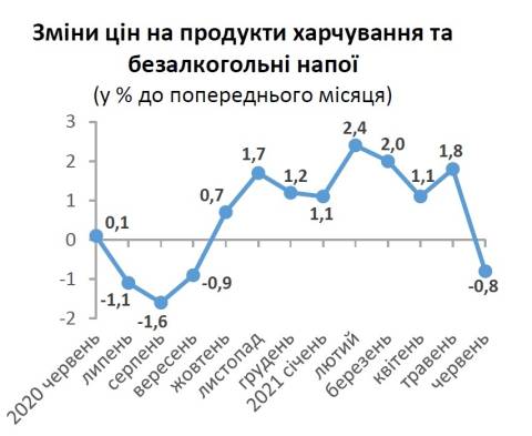 Ціни на продукти харчування та безалкогольні напої у червні цього року знизилися на 0,8%.