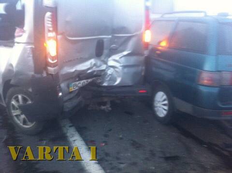 Сьогодні, 8 вересня, о 6.50 год на дорозі Львів – Рава Руська між селами Гряда та Грибовичі у аварію потрапило 12 авто. За медичною допомогою звернулися 10 осіб – водії та пасажири авто.