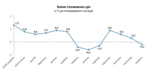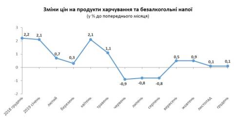 У грудні 2019 року, порівняно з листопадом, ціни на продукти харчування та безалкогольні напої зросли на 0,1%.