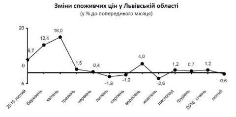 Загалом, ціни на споживчому ринку Львівщини у лютому, порівняно з попереднім місяцем, знизилися на 0,6% (в Україні – на 0,4%), а з початку року – зросли на 0,6% (в Україні – на 0,5%).
