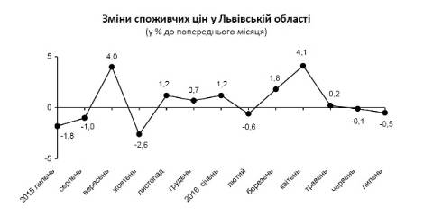 У липні, порівняно з червнем, ціни на продукти харчування та безалкогольні напої знизилися на 0,8%.