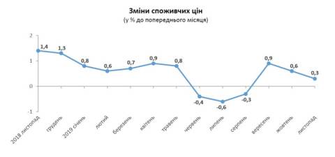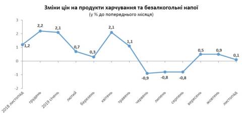 У листопаді, порівняно з жовтнем, ціни на продукти харчування та безалкогольні напої зросли на 0,1%.