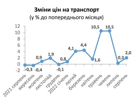 У сфері транспорту на 8,1% подорожчали автомобілі, на 5,8% – велосипеди. Вартість навчання на курсах водіїв підвищилася на 2,3%. Транспортні