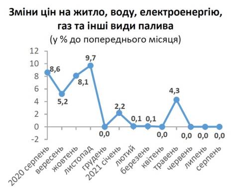 У житлово-комунальній сфері на 0,3% збільшилася вартість утримання та ремонту житла. Вартість комунальних послуг не змінилася.