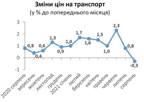 У сфері транспорту на 1% подешевшали автомобілі, на 0,4% – велосипеди. Вартість проїзду у міжміському поїзді збільшилася на 1,4%. Паливо та мастила подорожчали на 0,1%.