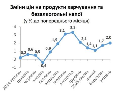 У квітні, у порівнянні з березнем, ціни на продукти харчування та безалкогольні напої підвищилися на 2%.