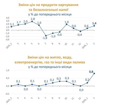 У лютому, у порівнянні з січнем, ціни на продукти харчування та безалкогольні напої підвищилися на 1,4%.