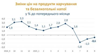 У вересні, у порівнянні з серпнем, ціни на продукти харчування та безалкогольні напої знизилися на 0,6%.