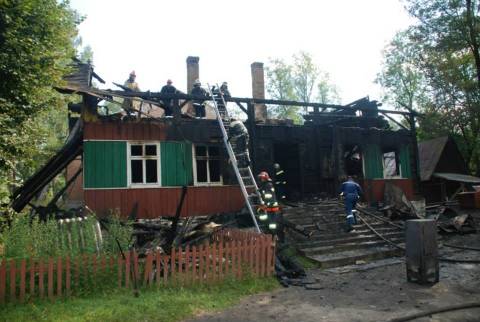 На момент прибуття пожежно-рятувальних підрозділів дерев"яна будівля була повністю охоплена вогнем, відбувалось обрушення конструктивних елементів перекриття, покрівлі та стін.