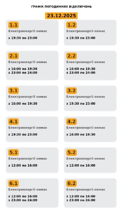 Крім того, а з 12:00 год діятимуть графіки погодинних відключень.