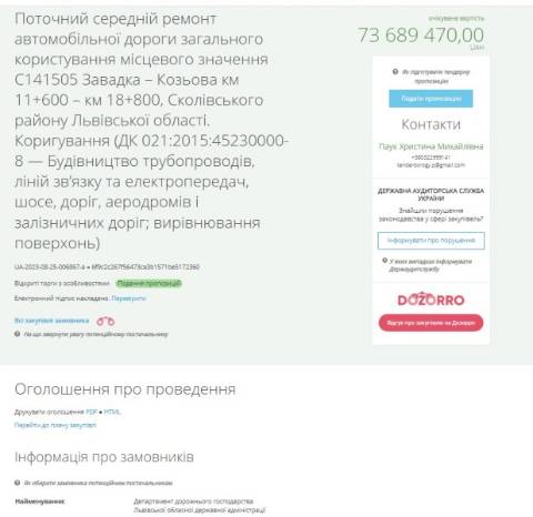 Нагадаємо, у липні Львівська ОВА провела закупівлю на ремонт моста через річку Західний Буг вартістю у 357 млн грн, а у серпні на капітальний ремонт дороги Турка – Лопушанка передбачили 215,8 млн грн.