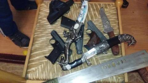 Відтак у помешканні одного зі зловмисників правоохоронці знайшли наркотики, серед яких, за попереднім висновком, був один кілограм марихуани, 30 грамів амфетаміну, а також пістолети «Röhm RG8 KAL.8mm Platzpatr», «Walther mod PP Cal 9mm P.A.K», «Рerfecta mod fbi 8000 8mm» й набої.