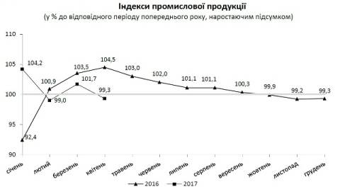 У січні-квітні, порівняно з першими місяцями 2016 року, виробництво промислової продукції у області зменшилось на 0,7%.