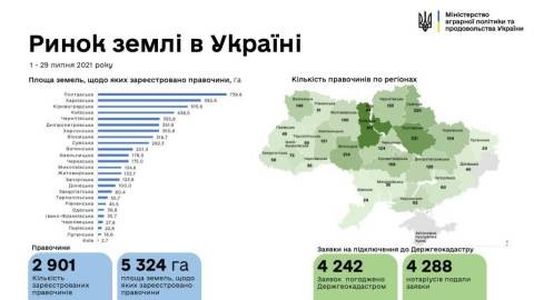 За даними Міністерства аграрної політики та продовольства України повідомляє, станом на 30 липня було укладено 2901 угоду в рамках ринку землі.