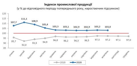 У січні-жовтні, порівняно з цими місяцями 2019 року, виробництво промислової продукції в області збільшилось на 3%.