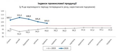 У січні-травні, порівняно з цими місяцями 2019 року, виробництво промислової продукції в області збільшилось на 3,3%.